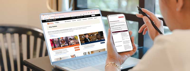 View the Key Dates page for academic, financial, and other administration dates, what they mean, and download your study planner.